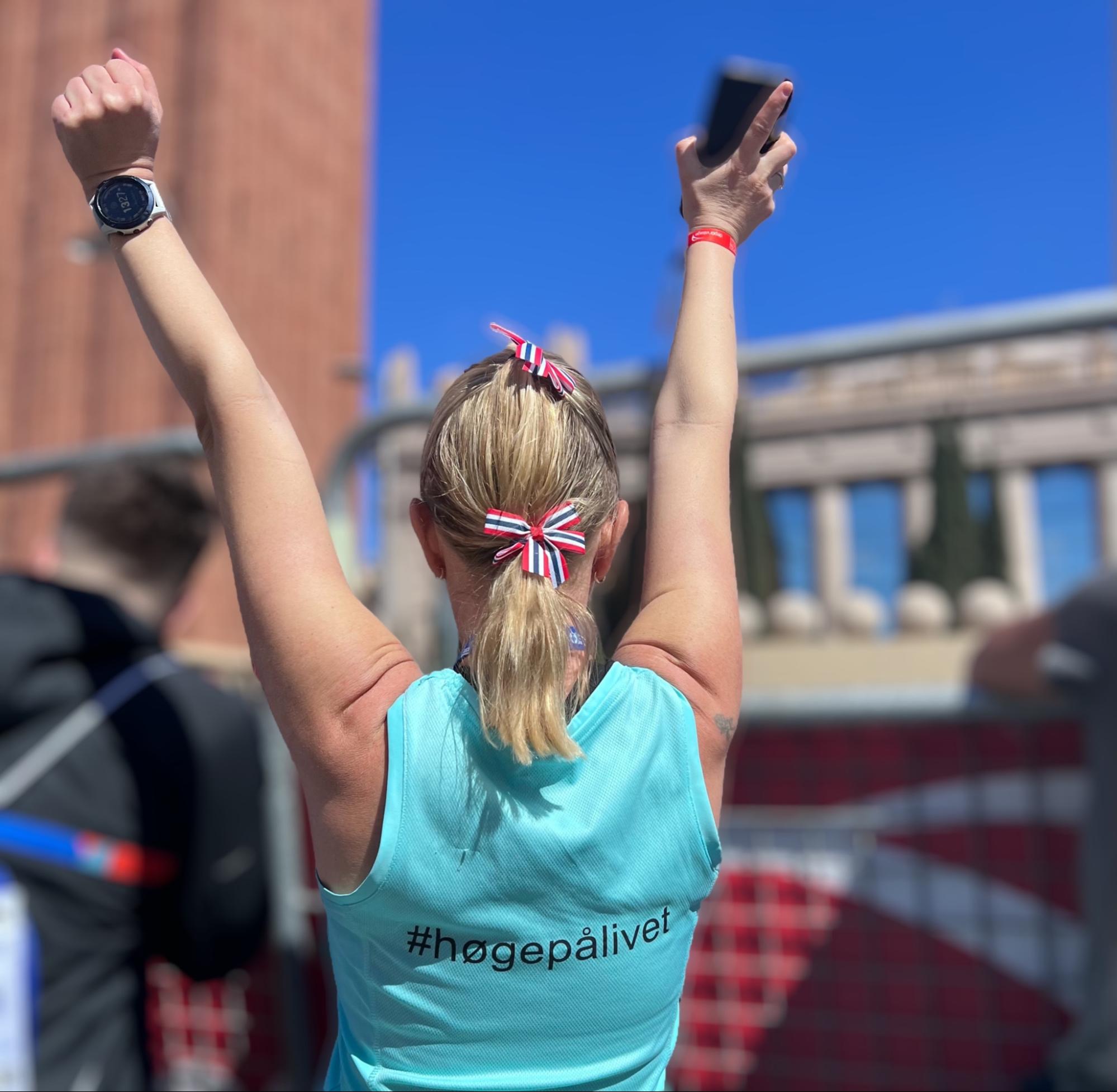 Jeg var så tilfreds og glad. Jeg jublede indenfor, og i mål kunne jeg fejre med Ine, og til sidst mødte vi de andre maratonløbere – fit Nina, Kine, Tanja og hendes veninder. Det var helt råt! Hvilket vi nød.